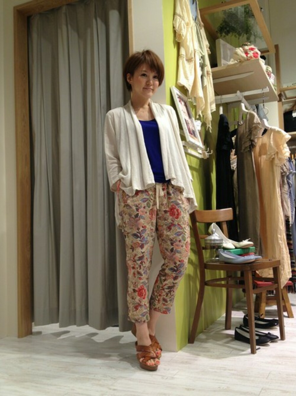 大人の花柄パンツスタイル。