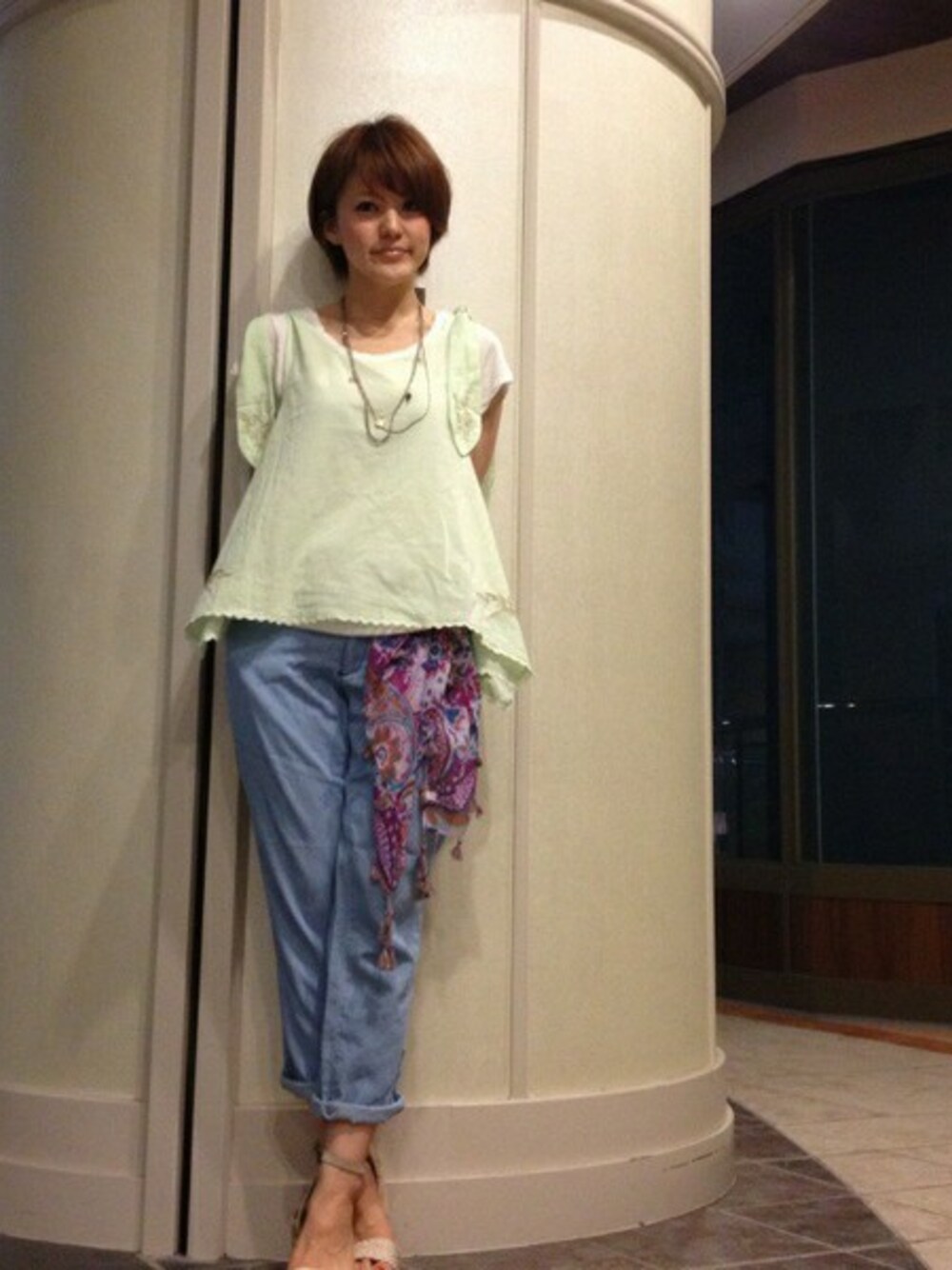 フレアなシルエットがかわいいキャミソールを使ったさわやかな休日スタイル。