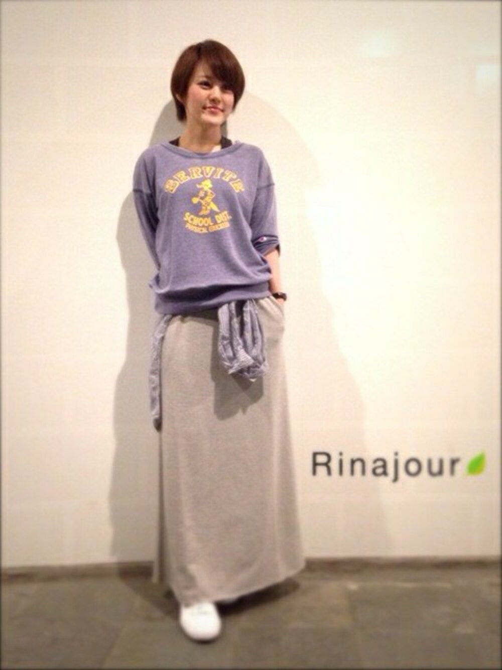 Iラインマキシスカートは腰周りをすっきりみせてくらる優秀アイテムです!ヴィンテージライクのスウェットとあわせて大人リラックススタイル。