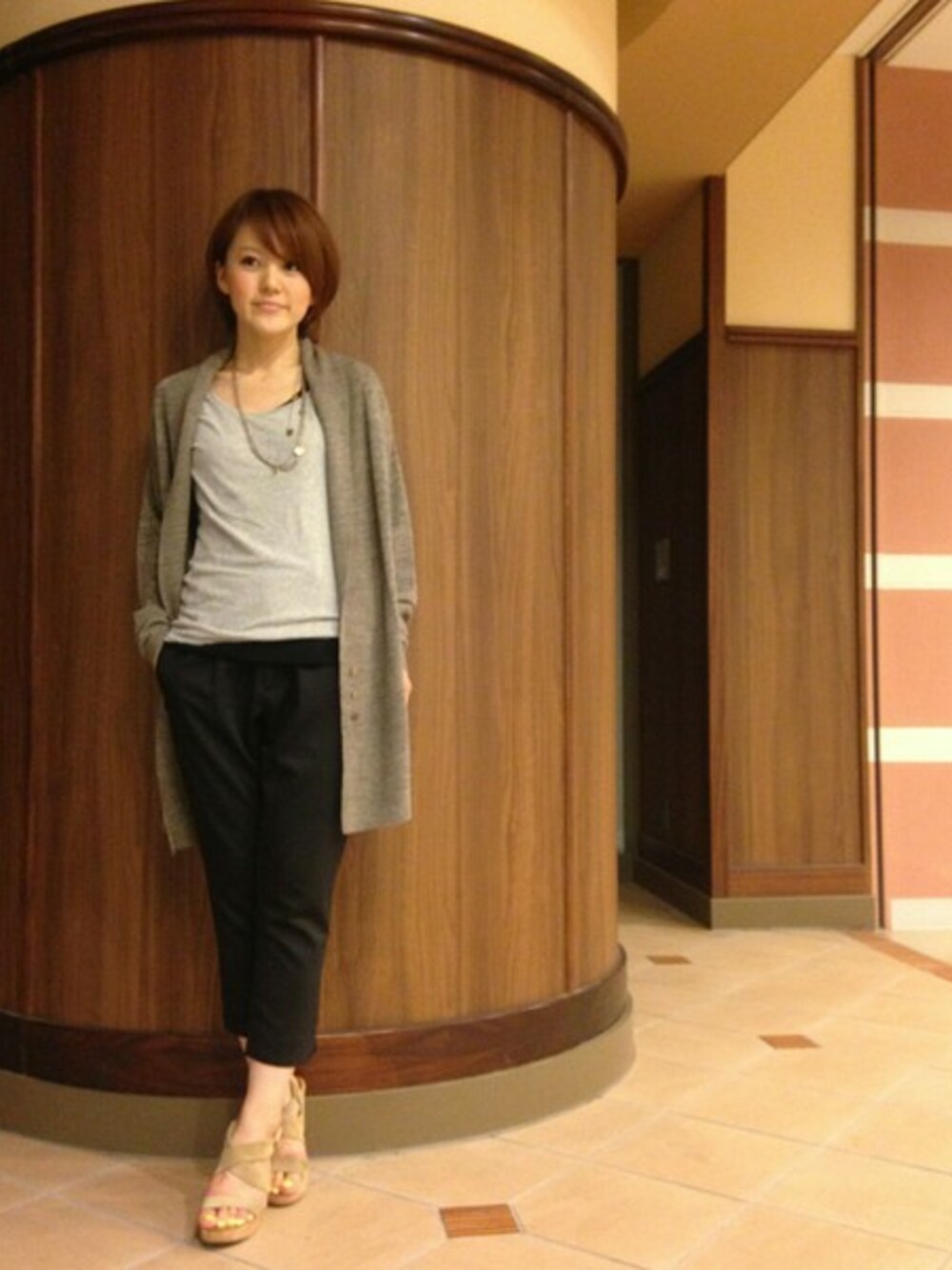 フランダースリネンを使った上質な麻カーディガンを大人っぽく。