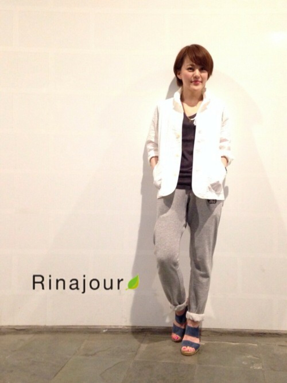シアサッカー生地のカバーオールにスウェットパンツを合わせて大人リラックススタイル! 足元は夏のmy定番Calzanorのエスパサンダル♪