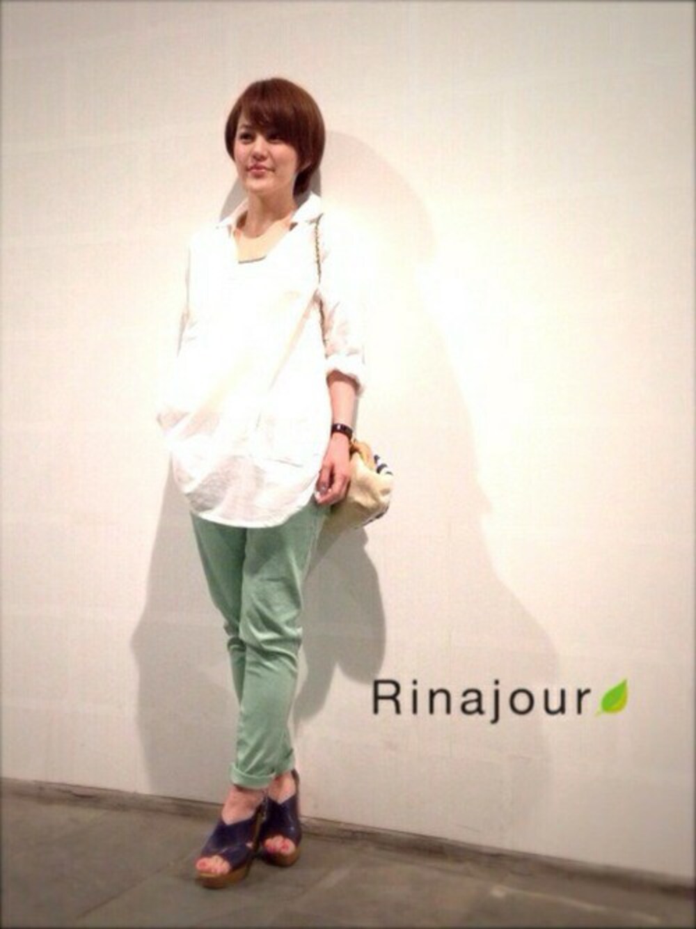 Nakamuのシャツ/ブラウス「Rinajour (リナジュール) ボイル無地スキッパーシャツ (6018)」を使ったコーディネート