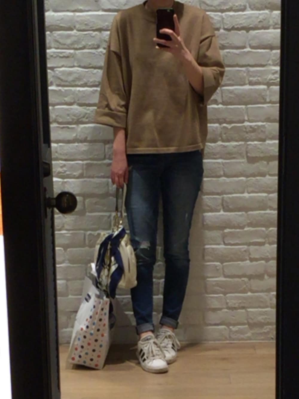 ゆったりしたニットトップスがお気に入り〜 首のつまり具合が絶妙!!