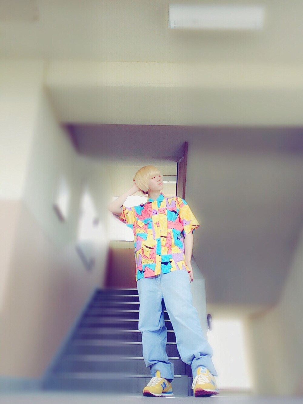 古着屋さんでみつけたカラフルグラサンビッグシャツに古着のゆるゆるじーぱん合わせましたヽ( ̄▽ ̄)ノ