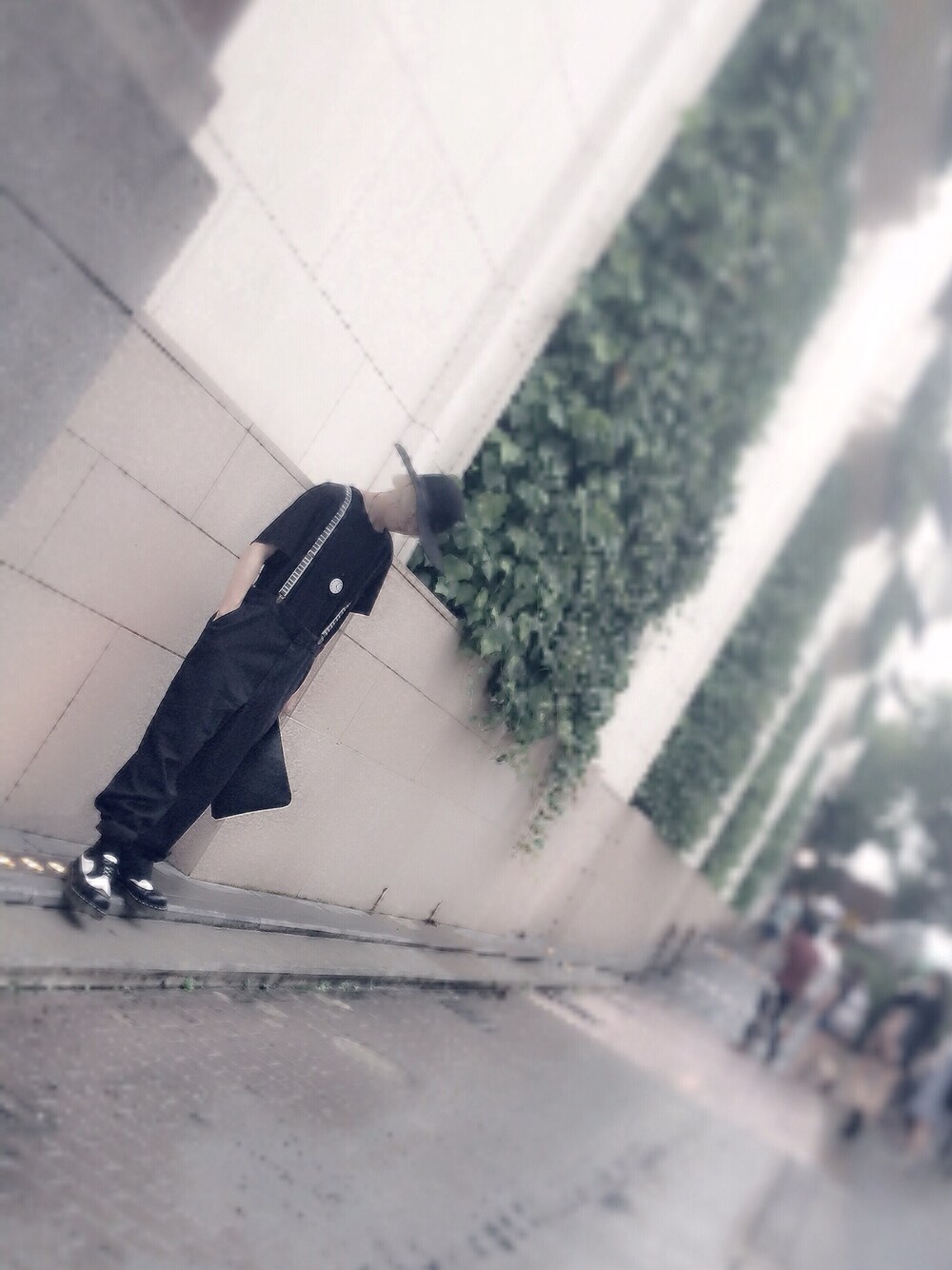 東京旅行3日目のコーデ モノトーンコーデです!! くろのでかでかのパンツをサスペンダーでとめてみました!!