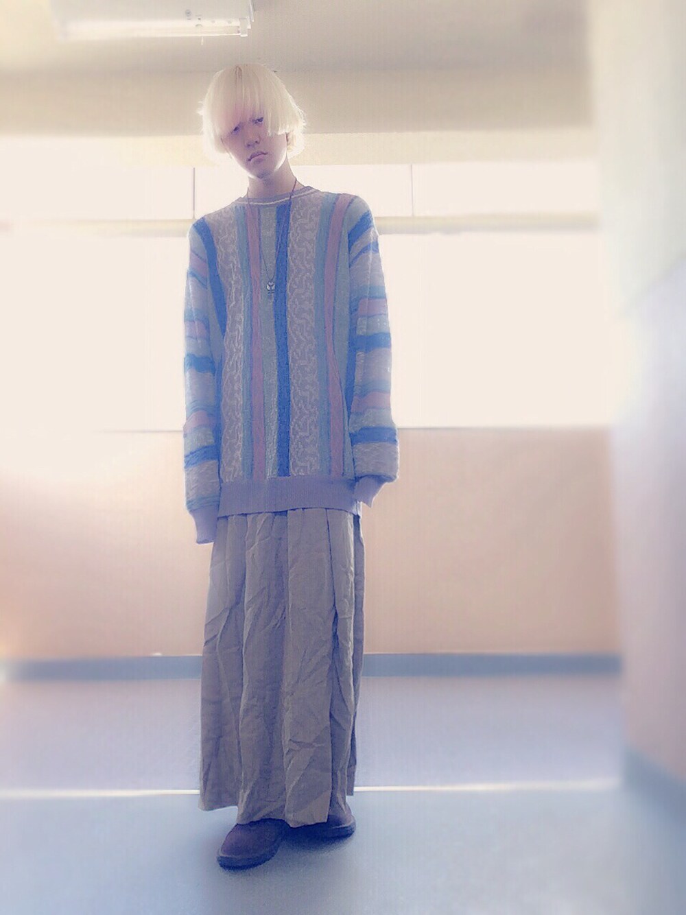 今から神戸にでも行こうかと思ってます、 暑いけど秋服コーデが着たかったのでニットコーデです! 今日は古ーい感じのスカート男子ですね。 そして、期間限定で前髪に薄いピンク入れました! 今日の服に合ってるかと言えば微妙ですが、、 髪型は大変気に入ってます。 もし、見かけたら声かけて下さいね!!