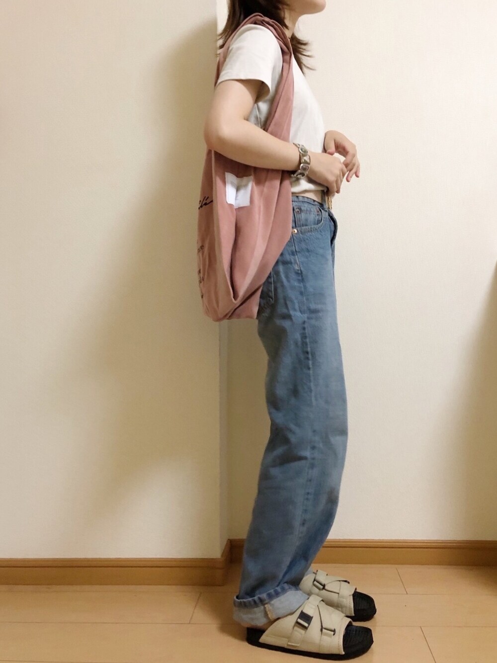 ユニクロユーのTシャツ使いやすすぎる…買い足します… 韓国で買ったdepoundのトートバックを使いたいがためのコーディネート