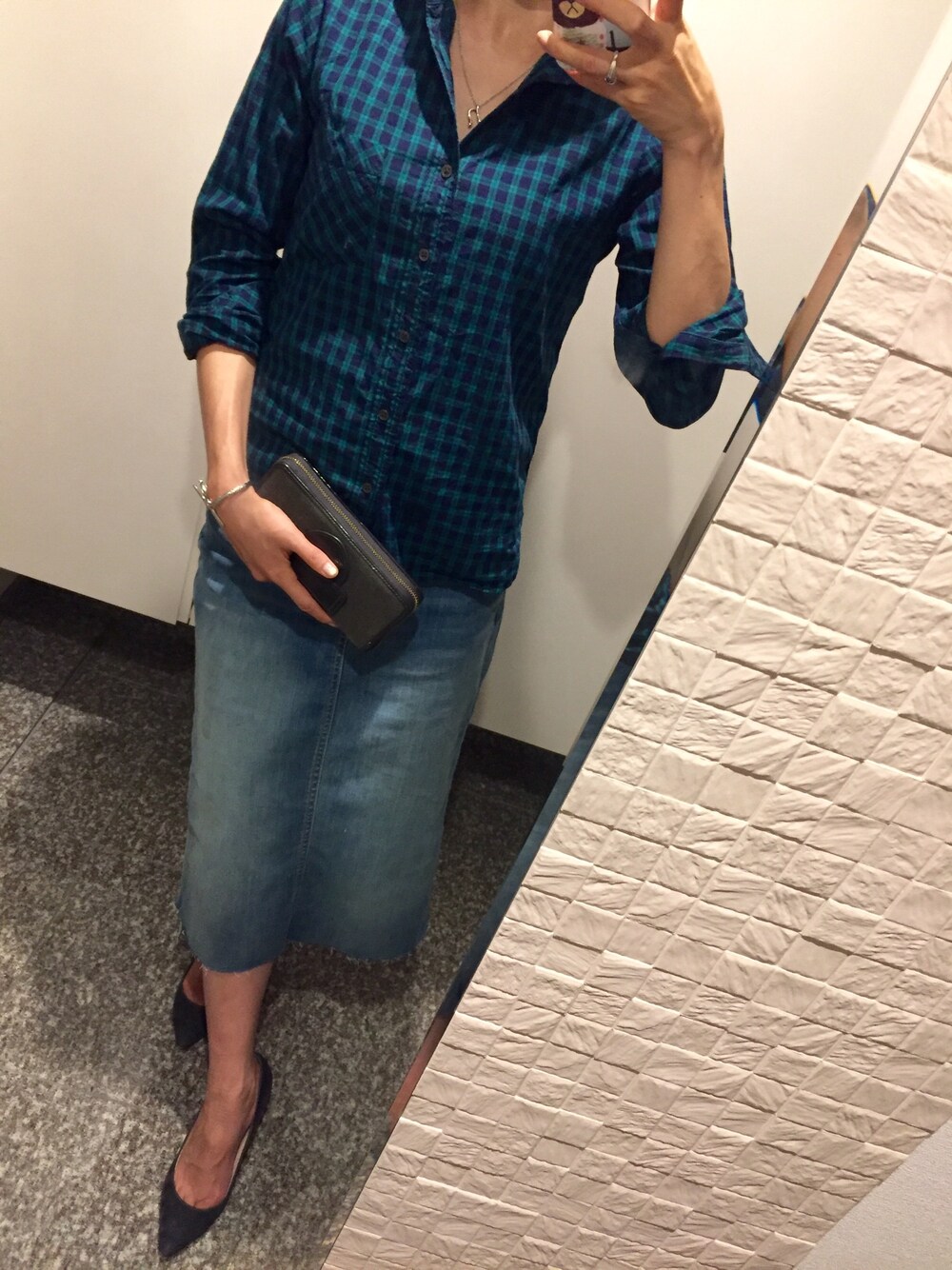 振休だった今日は、課題をやったりお家のことをあれこれと😉 そんなゆる〜い日はのびのびデニムスカートとシワシワシャツで楽チンに♡