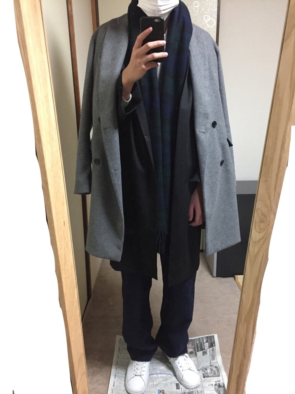 66号線歩く幽霊三ツ星カルテットのチェスターコート「WEGO/メルトンダブルチェスターコート」を使ったコーディネート