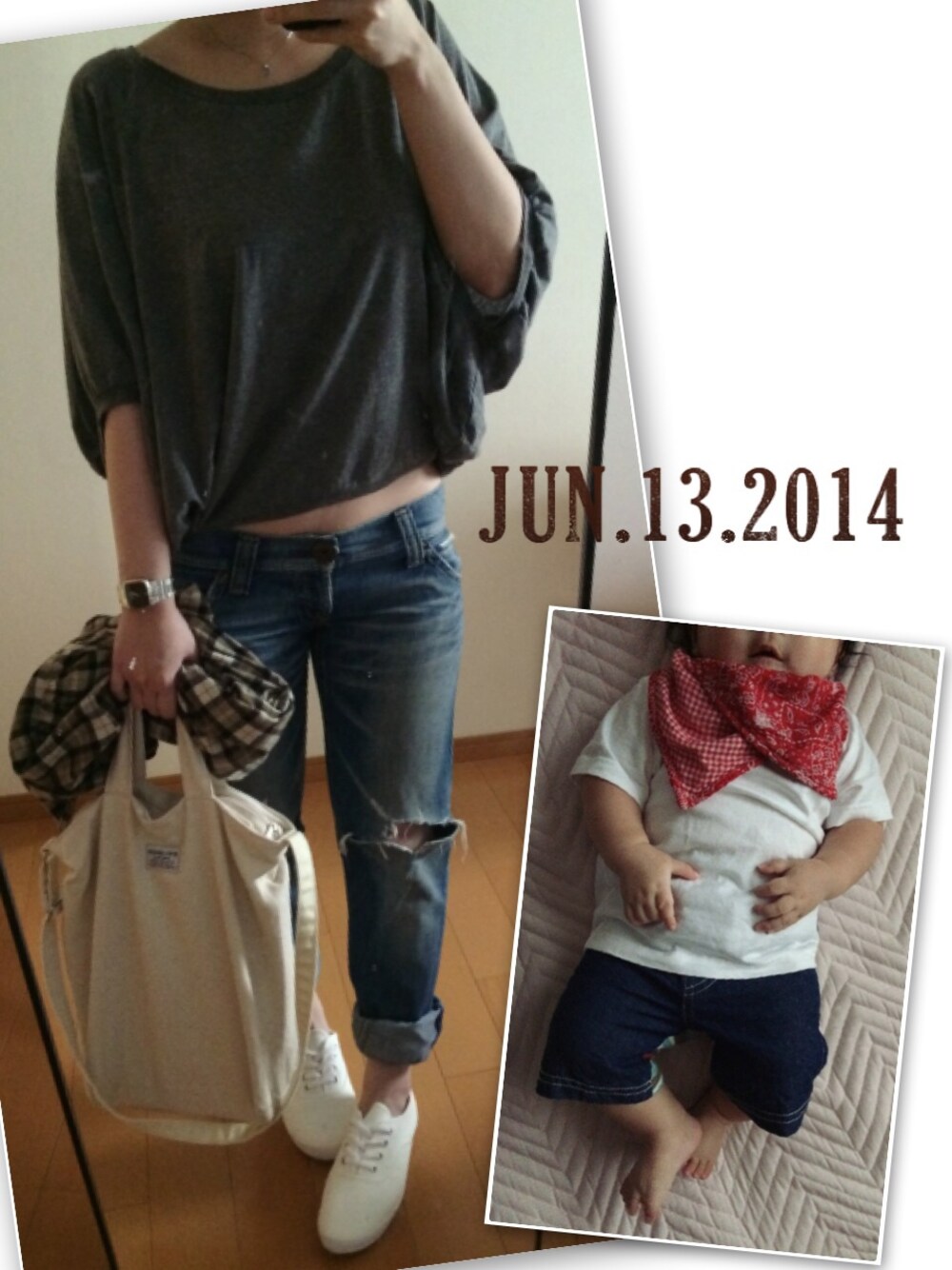 ジーパン RODEOCROWNS 靴 GU シャツ ? 息子さん 西松屋 お腹冷やさないように シャツ持参です´◡` Tシャツ×ジーパンコーデ♡