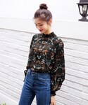 shichiのデニムパンツ「ハイウエストストレートデニムパンツ」を使ったコーディネート