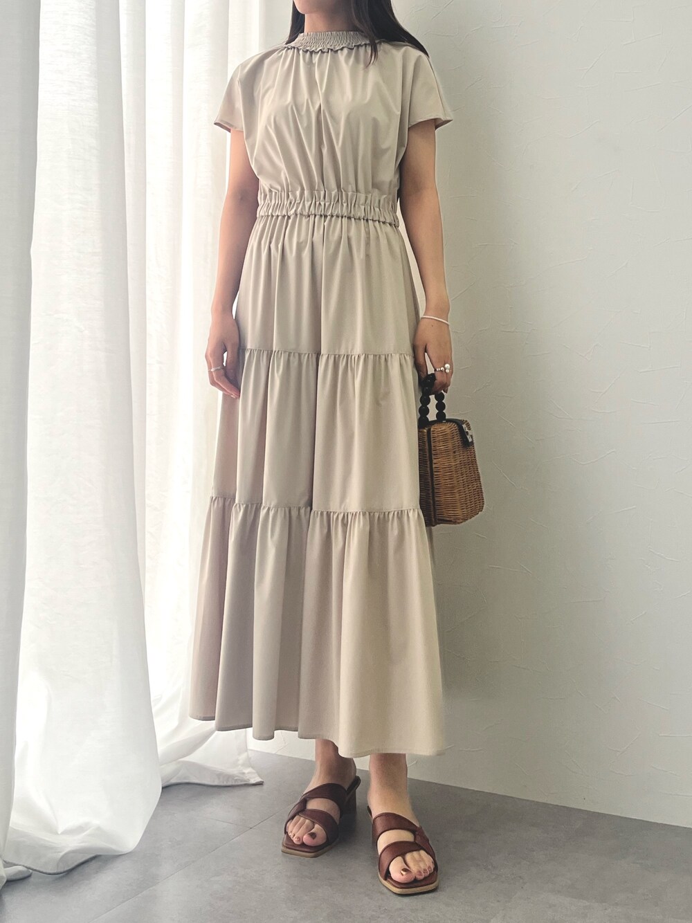 ティアードデザインがかわいいワンピース◎ ブラウンのサンダルを合わせて少しカジュアルな印象に🤎 170cm/骨格ストレート/イエベ