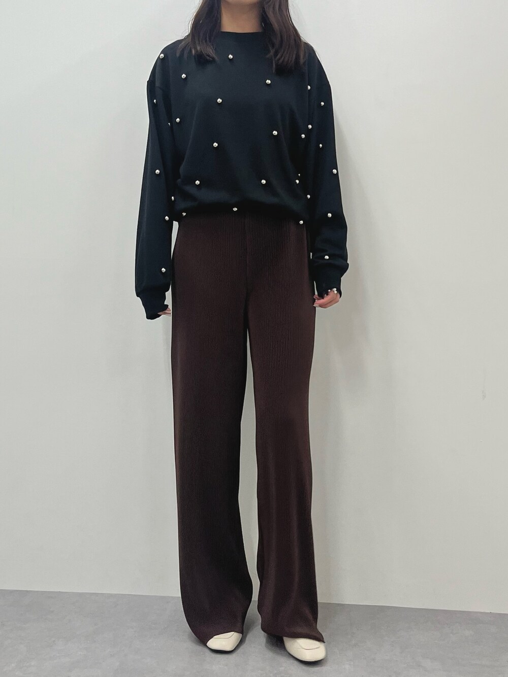 Nami(nissen)のその他パンツ「高身長 カットソープリーツワイドパンツ 丈長め・トールサイズ」を使ったコーディネート