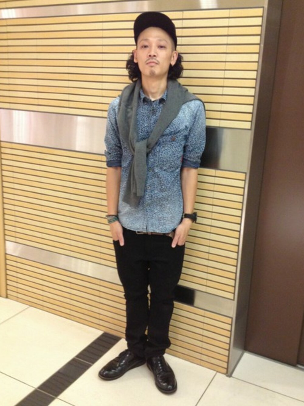 ストレッチのきいた細身のシルエットのパンツに花柄のシャツを合わせた間違いなしのコーディネートです!