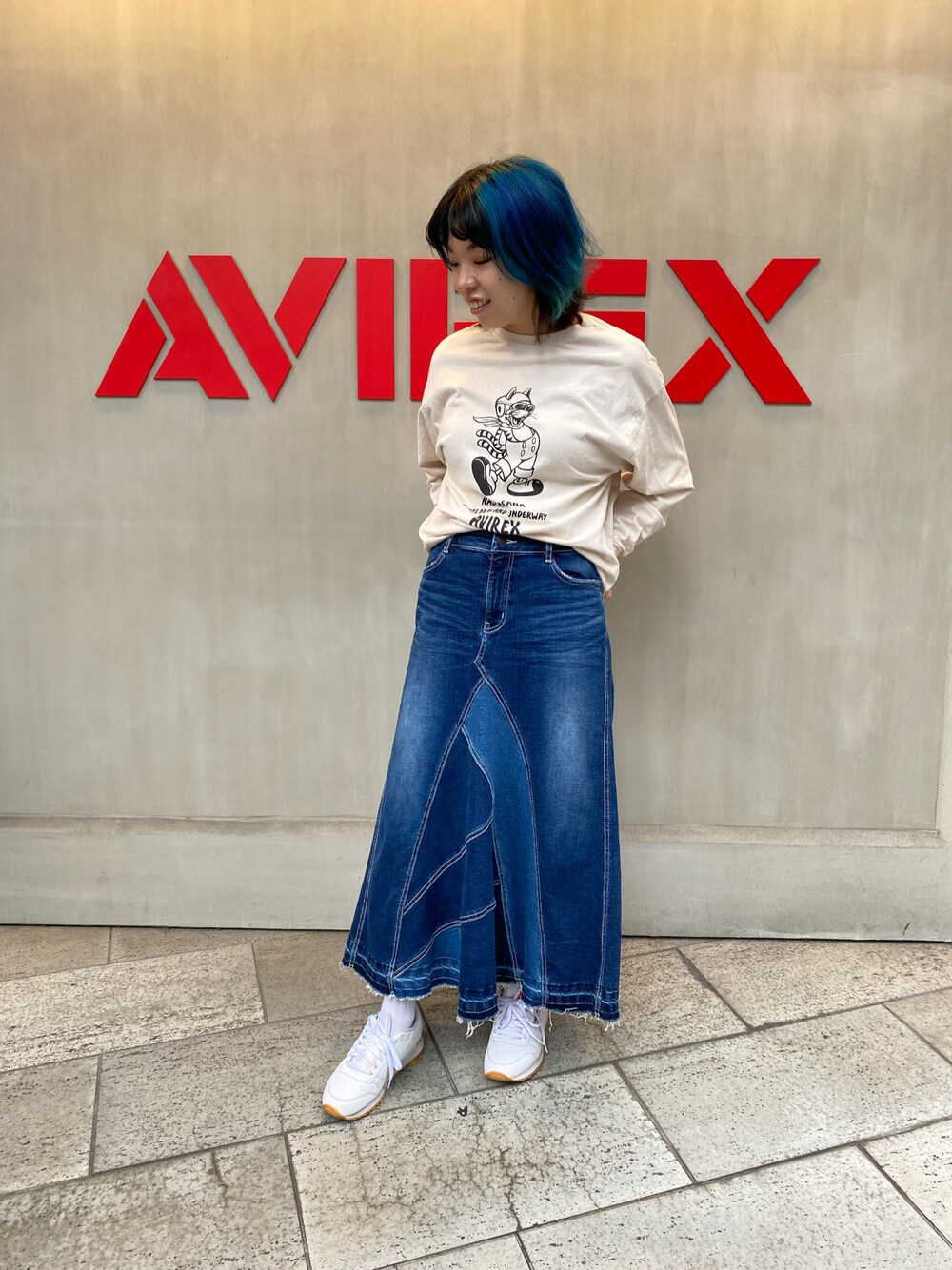 HYOGOのデニムスカート「【直営店限定】REMAKE STRECH DENIM NAVY SKIRT/ リメイクストレッチデニムスカート」を使ったコーディネート