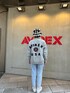 HYOGO(AVIREX 心斎橋店)のスウェット「VARSITY LOGO CREW SWEAT/ バーシティーロゴクルースウェット」を使ったコーディネート
