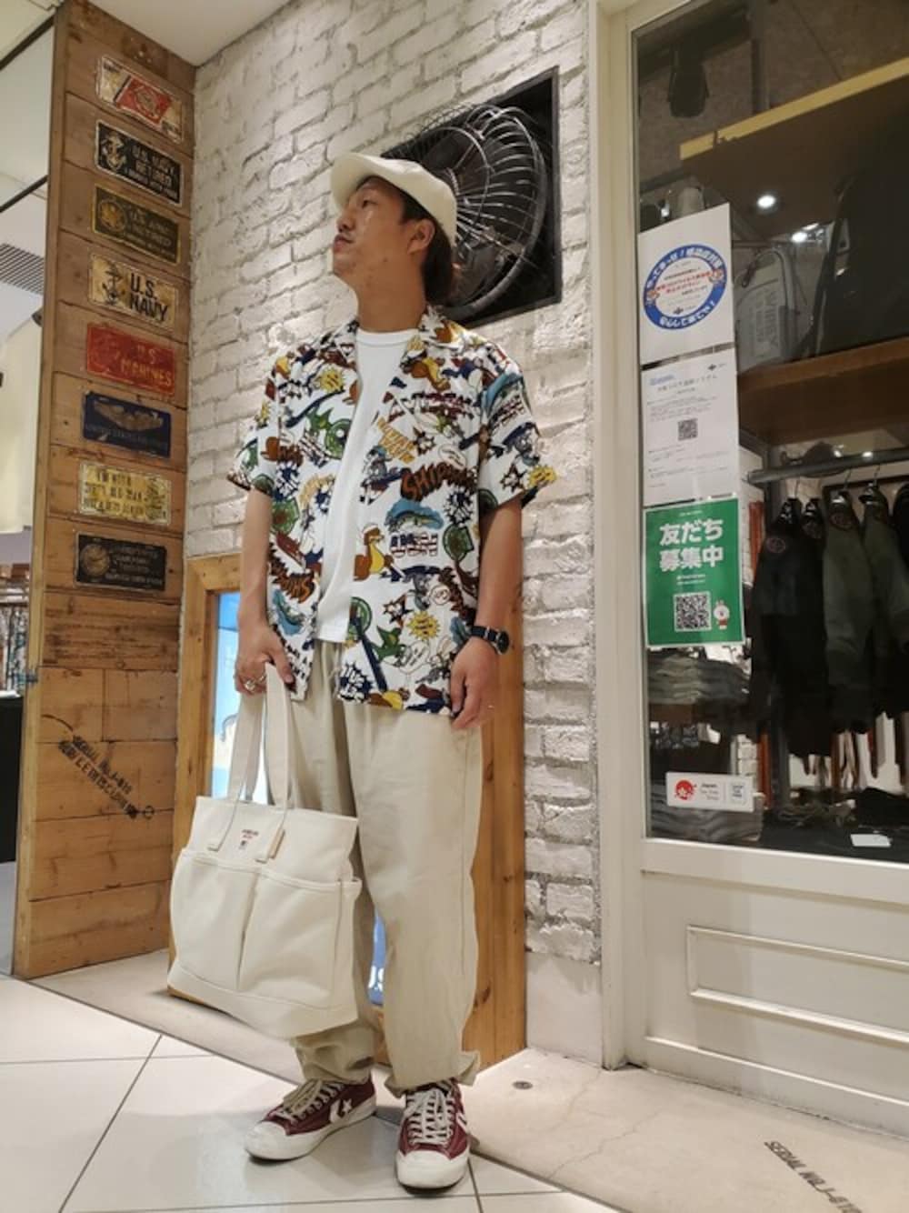 松下晋弥(AVIREX なんばパークス店)のシャツ/ブラウス「アロハシャツ ネイバル コミック/ALOHA SHIRT NAVAL COMIC/ アヴィレックス / AVIREX」を使ったコーディネート