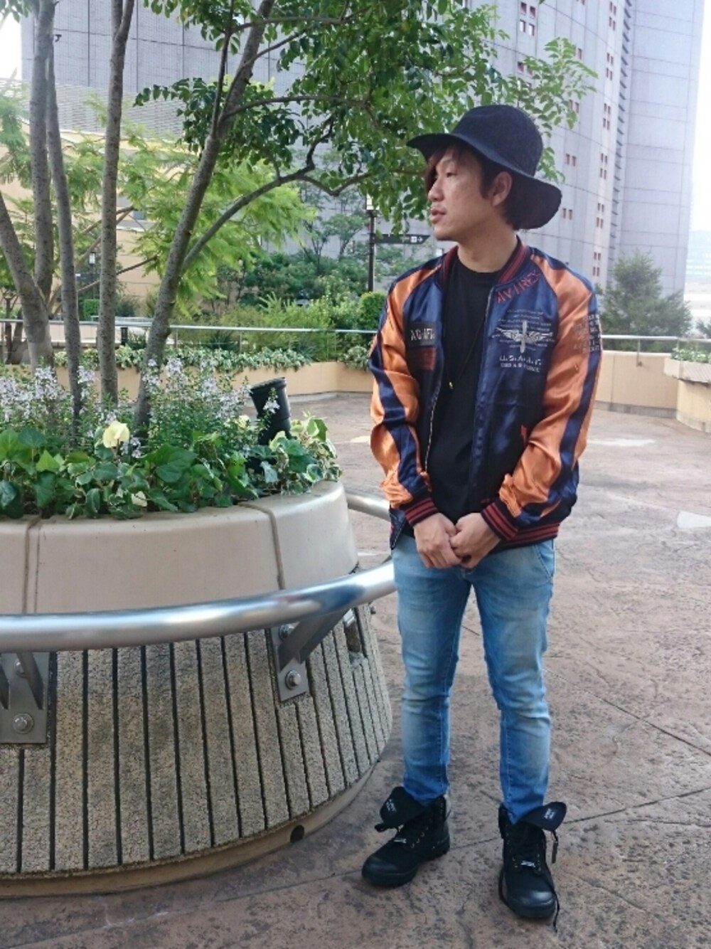 松下晋弥(AVIREX なんばパークス店)のブルゾン「avirex/ アヴィレックス / MULTI LANGUAGE SUKA JACKET/ スカジャン」を使ったコーディネート