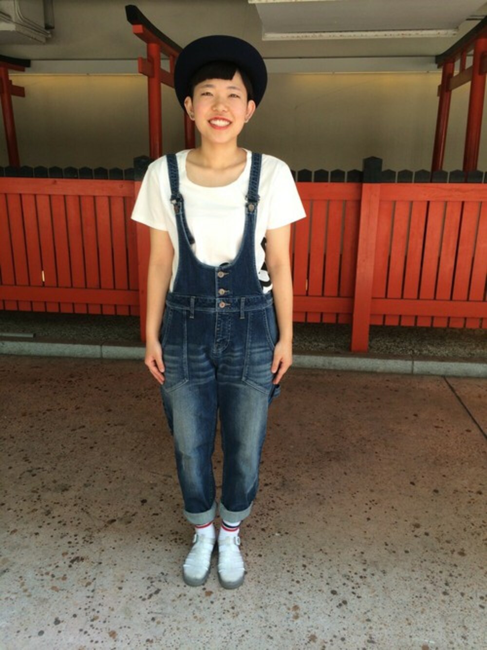 丈が少し短めのTシャツです! マキシ丈のスカートにもよく合いますよ! サロペットもデニムですが、ストレッチが効いていて動きやすい!!