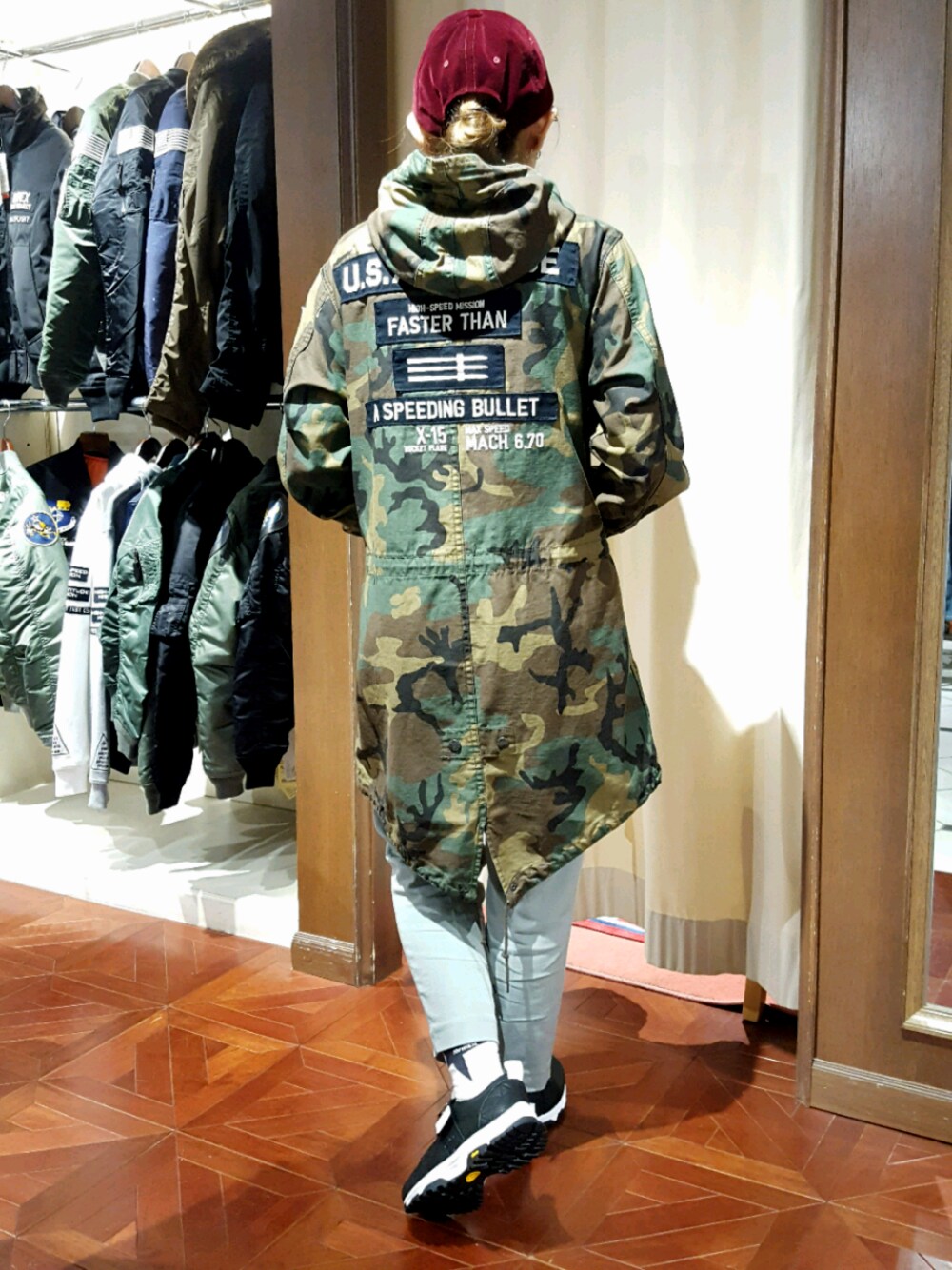 AVIREXらしいアイテム‼ こちらもウィメンズのサイズに なります👩 Fサイズ着用です☺ AVIREX 心斎橋店 2018.10.4