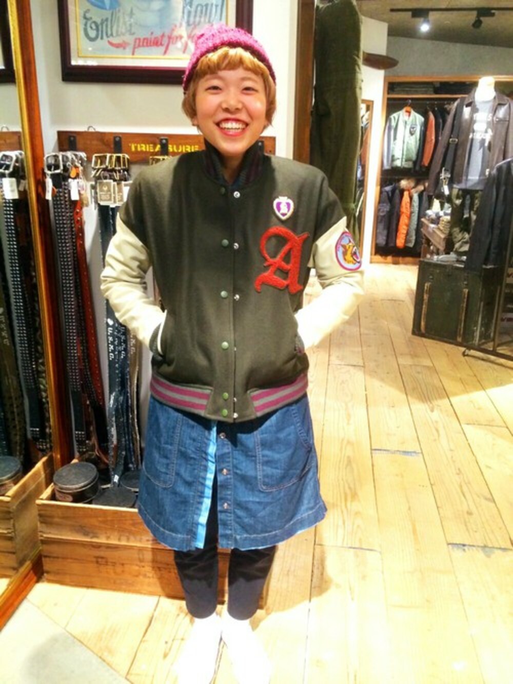 imaiのスタジャン「avirex/アヴィレックス/レディース/"A"WAPPEN STADIUM JACKET」を使ったコーディネート