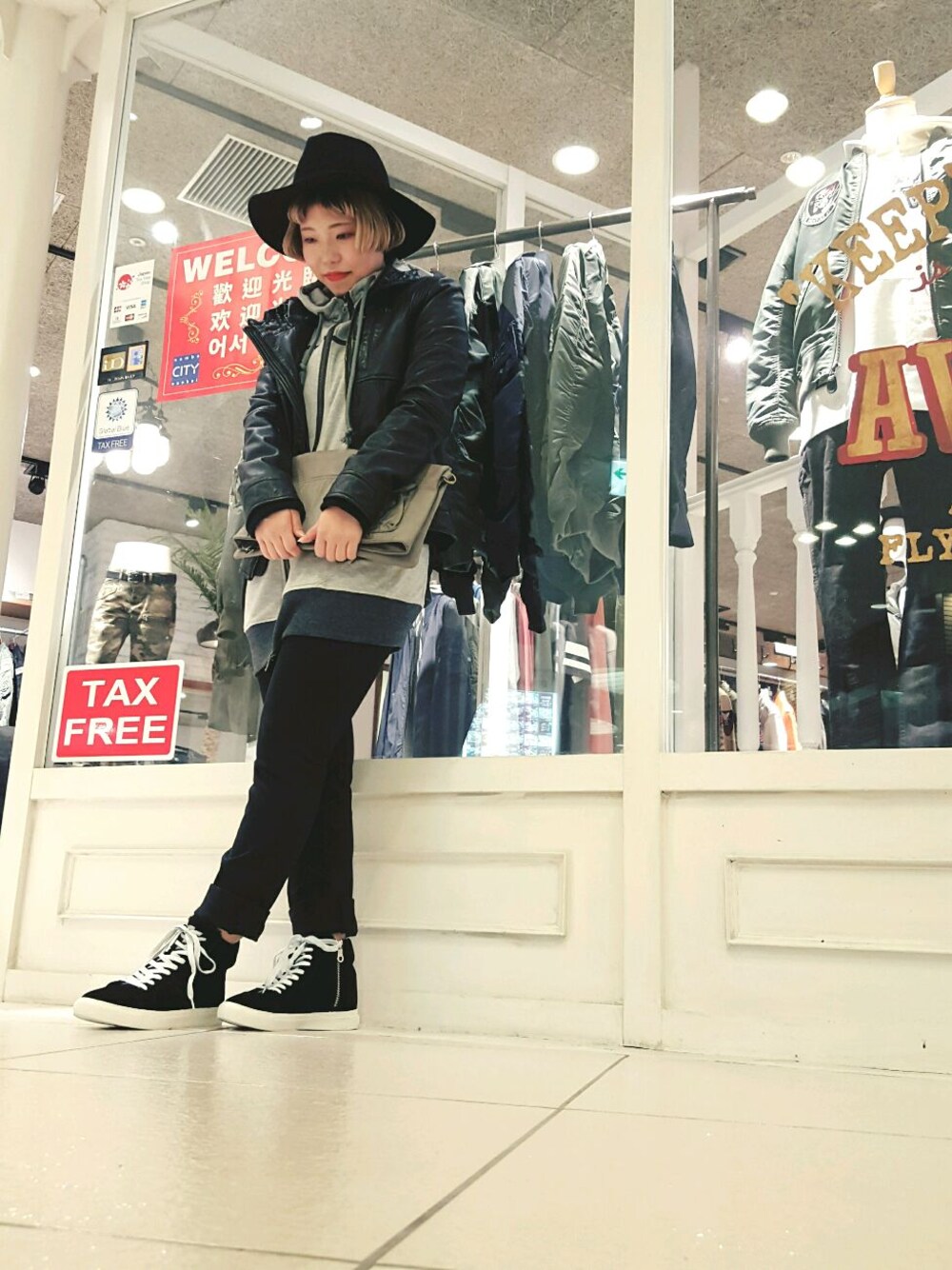 imaiのブルゾン「avirex/ アヴィレックス/ ZIP UP SHEEP LEATHER PARKA/ ジップアップ シープ レザーパーカー」を使ったコーディネート