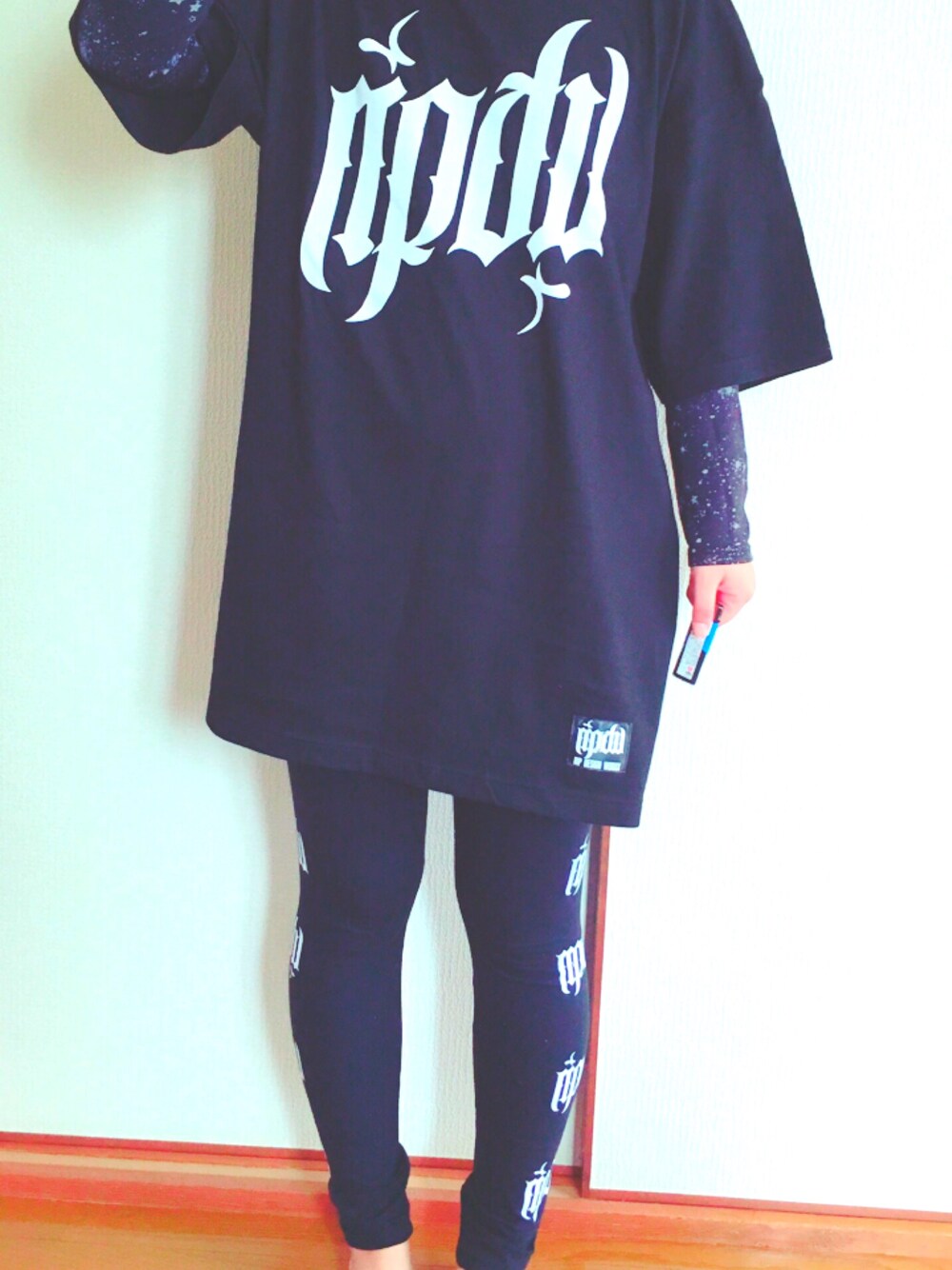 初WEAR! トップスは行きつけのショップとRIPDWと SAKAEYAさんとのコラボT☆彡.。 旦那とおそろいですᙏ̤̫♡ XXLサイズでワンピース風に… 産後の体型隠しにビックサイズ← 左手にあるのは何故でしょうライターです。
