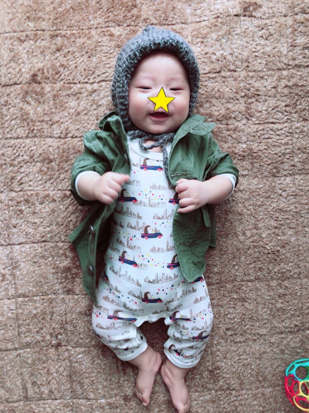 母手作りの小人帽で秋らしい装いで今日もスーパーへ行きます。 中のロンパースはハリネズミが車で颯爽と街をドライブしている柄で、 ...そうそう。 中を見やすくしてくれてありがとう。 昔飼っていたハリネズミとよくこうやってドライブに行ったことを思い出したり、しませんね。していないんでね。 身長70cmあるからもう60サイズがパツパツです。 布おむつなんで余計にパツパツ。 パツパツ。 パッツンパッツン。 パパッツンツン。 たのしくなってきたのでスーパーに行ってきます。
