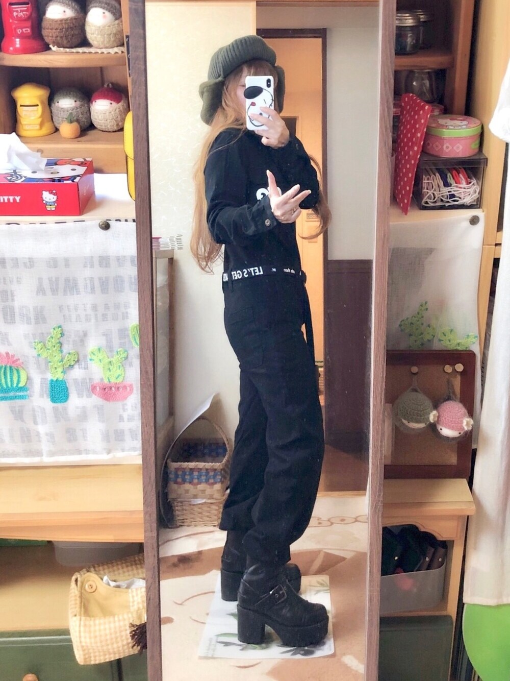 菜実のキャップ「リブニットボンバーキャップ」を使ったコーディネート