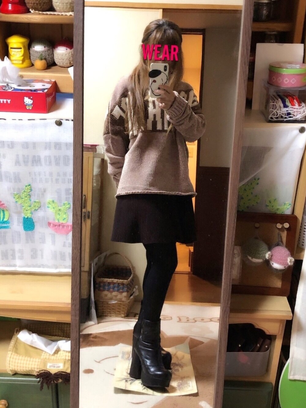 菜実のスカート「ニット地フレアーミニSK」を使ったコーディネート