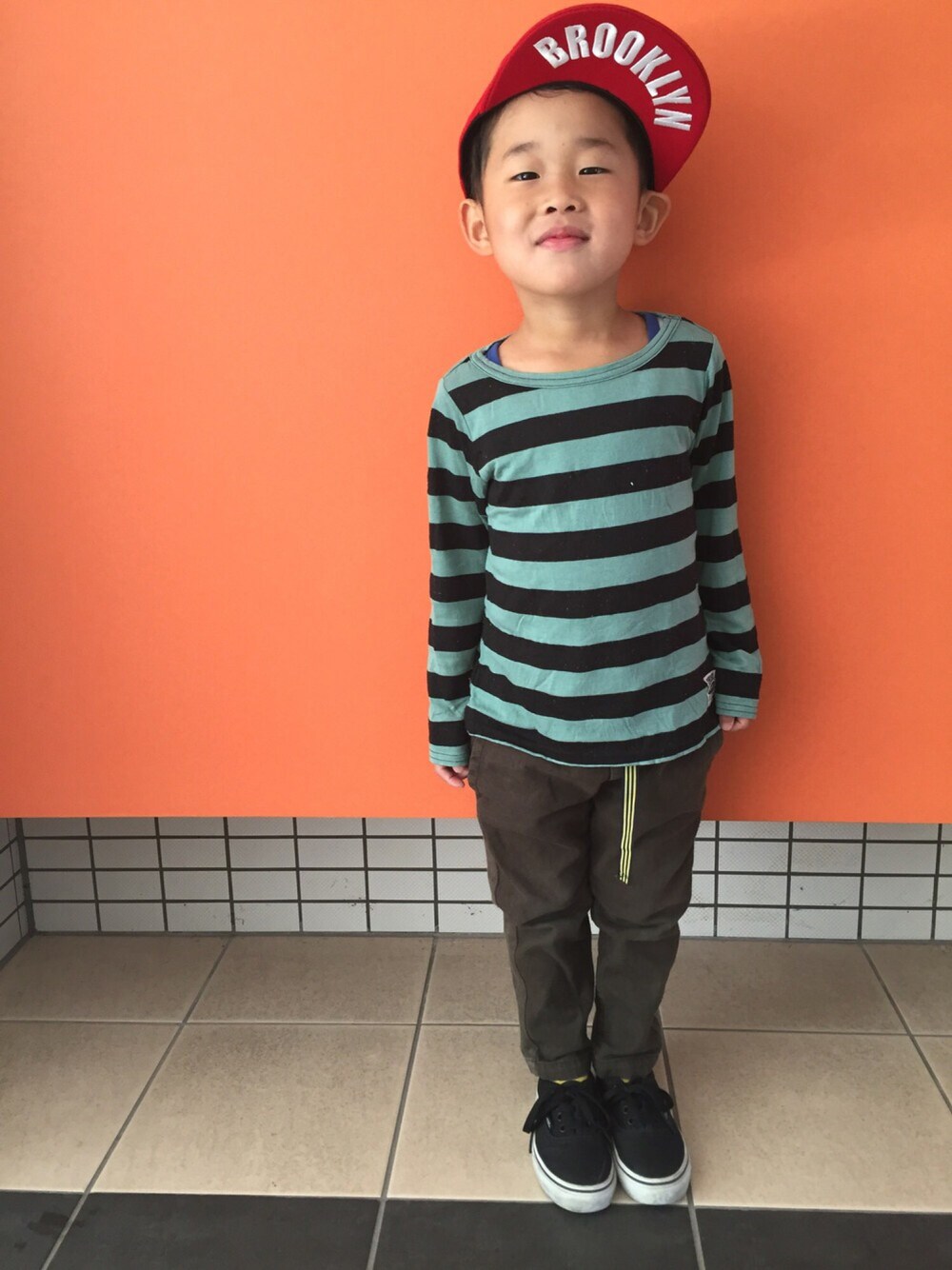けんえいのキャップ「NEWERA KIDS 59FIFTY NEW YORK YANKEES SCARLET [ NEW ERA CAP ]」を使ったコーディネート