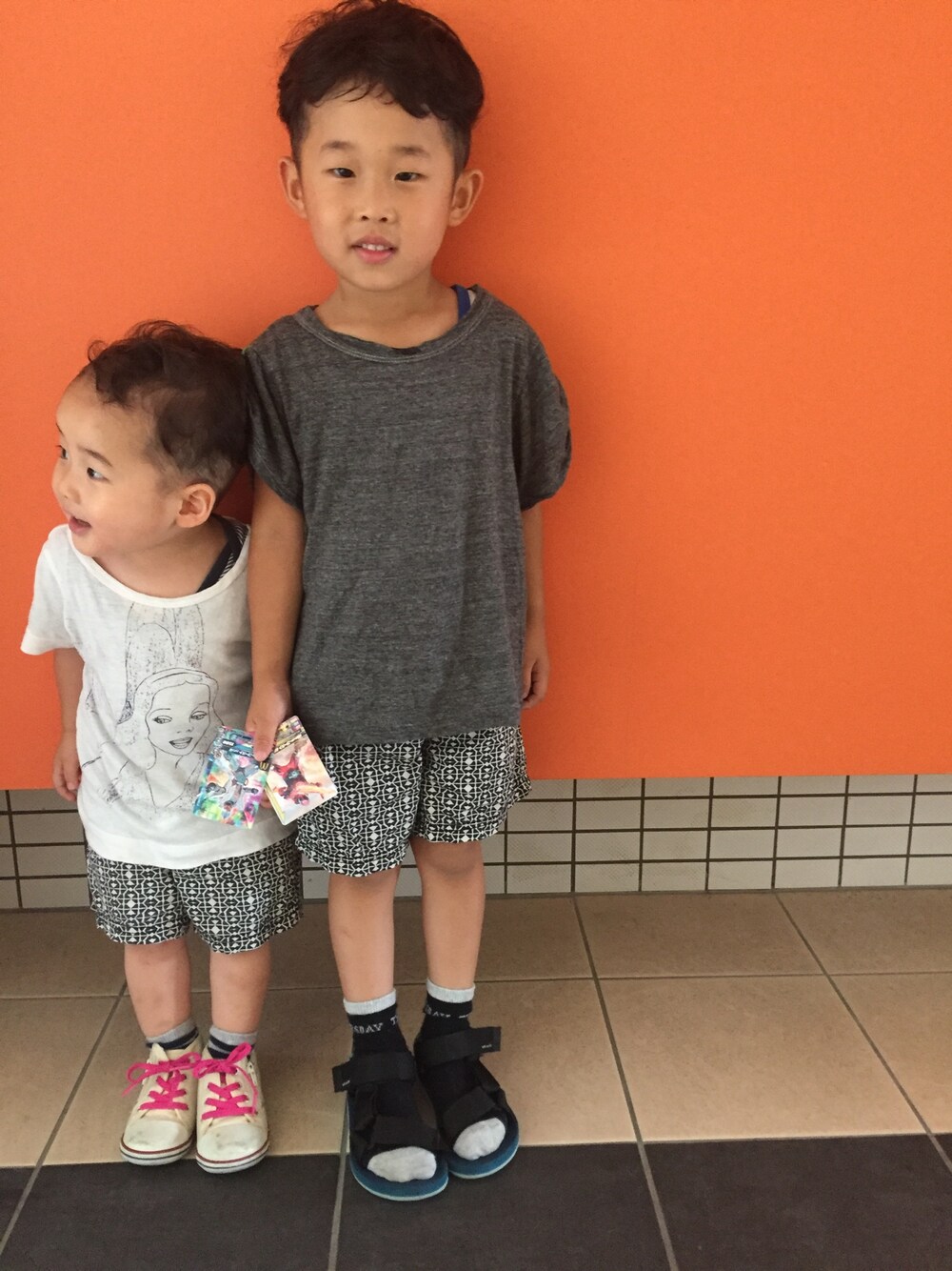 ガンバライジング行ってきます! 兄 腕に付いてる緑のリボンがポイントです。 弟 ピノキオのTシャツおそらく女の子用だけど、可愛いので。 見ていただきありがとうございます♪