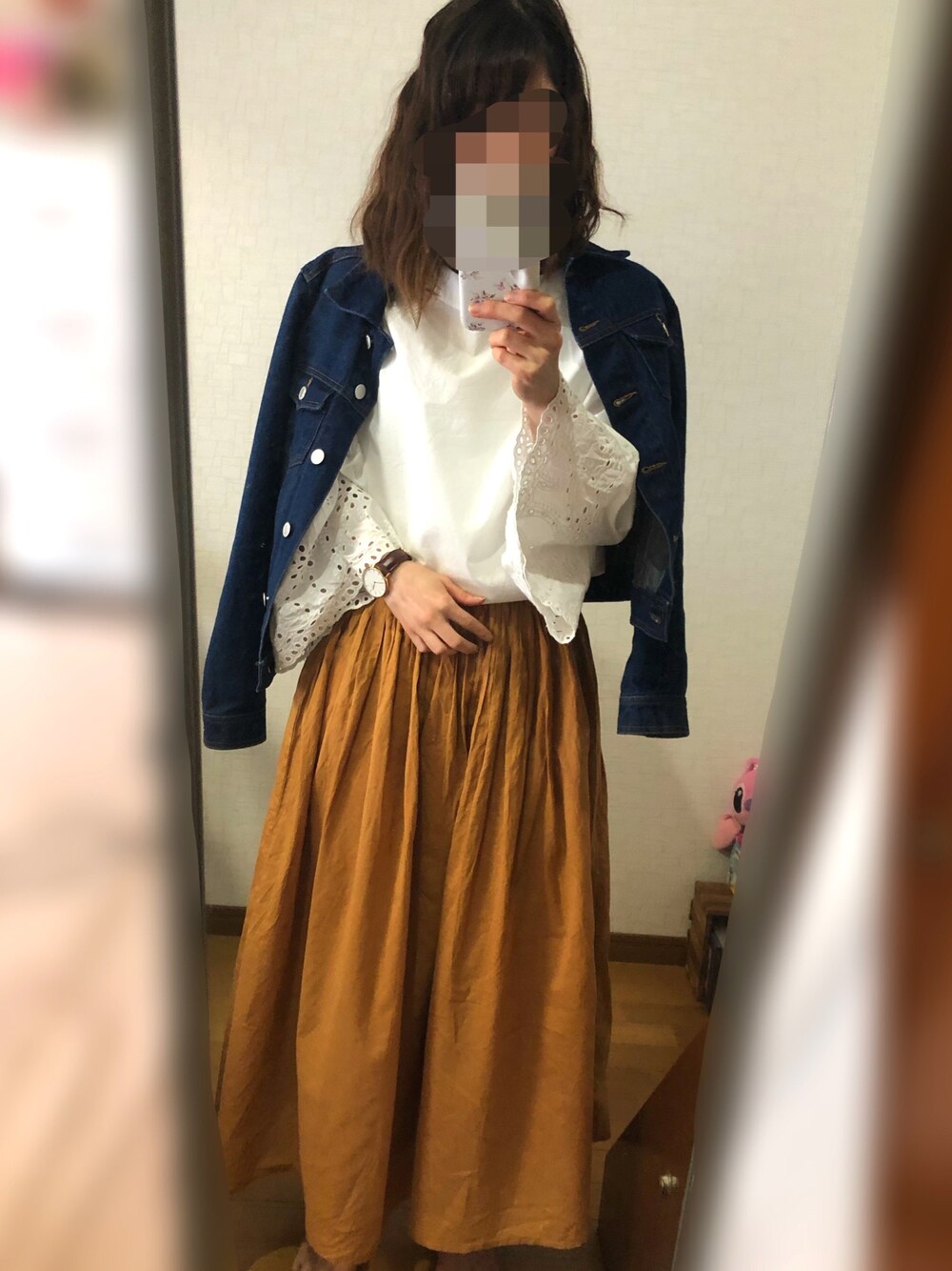 今日は暖かかったですが、風が冷たかったので、デニムジャケット羽織りました! ナノユニバースのブラウス⁉︎は袖が可愛いです♡