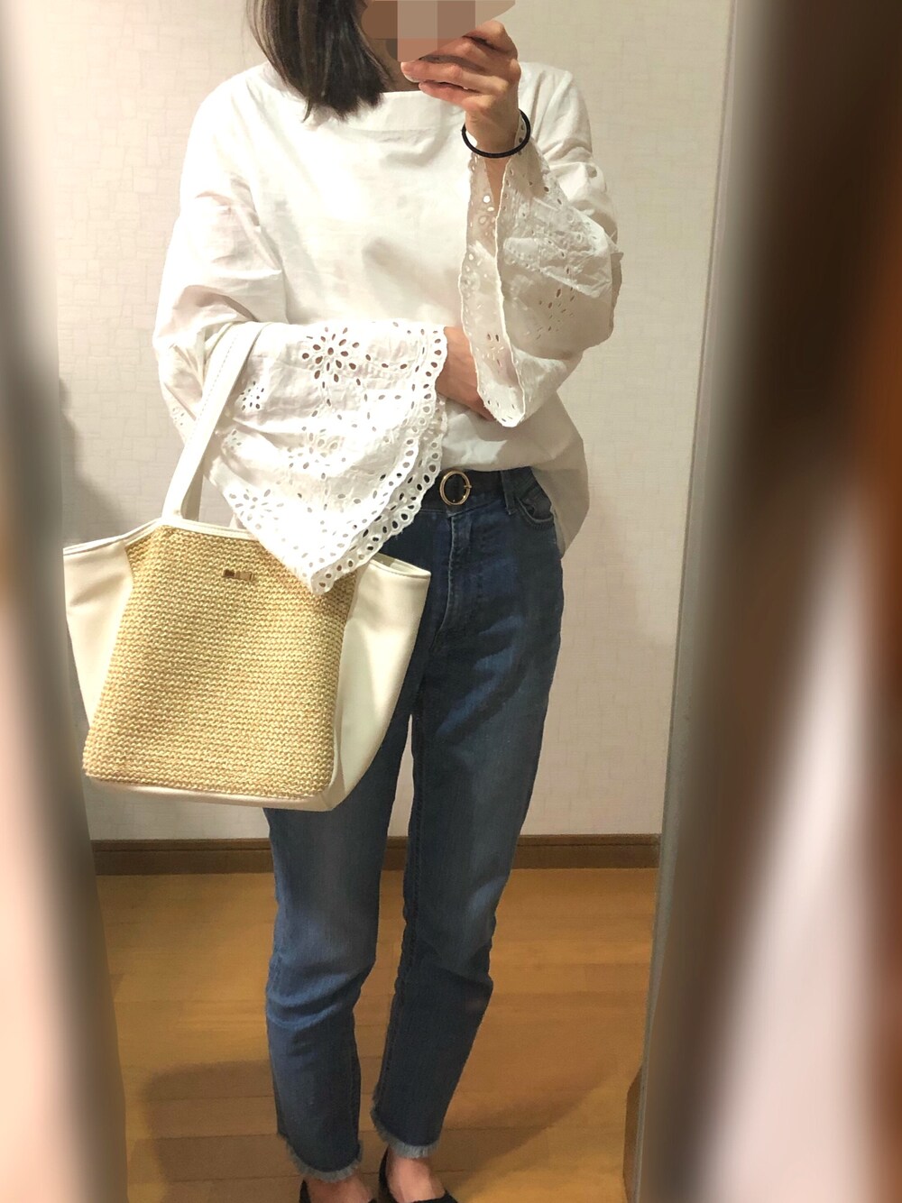 na*のシャツ/ブラウス「【CLASSY 3月号掲載】スカラ刺繍スリーブブラウス」を使ったコーディネート