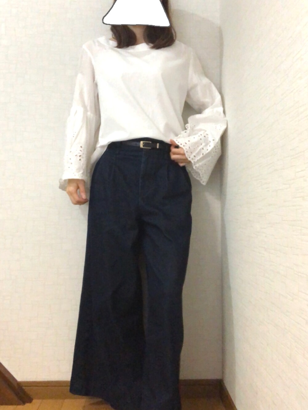 デニム×ホワイトコーデ。 シンプルだけど、可愛さと大人っぽさがあるコーデのつもりです!