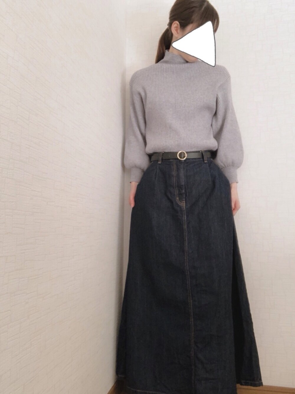 今日のコーデ。 カジュアルコーデです! シンプルにニット×デニムスカートです。