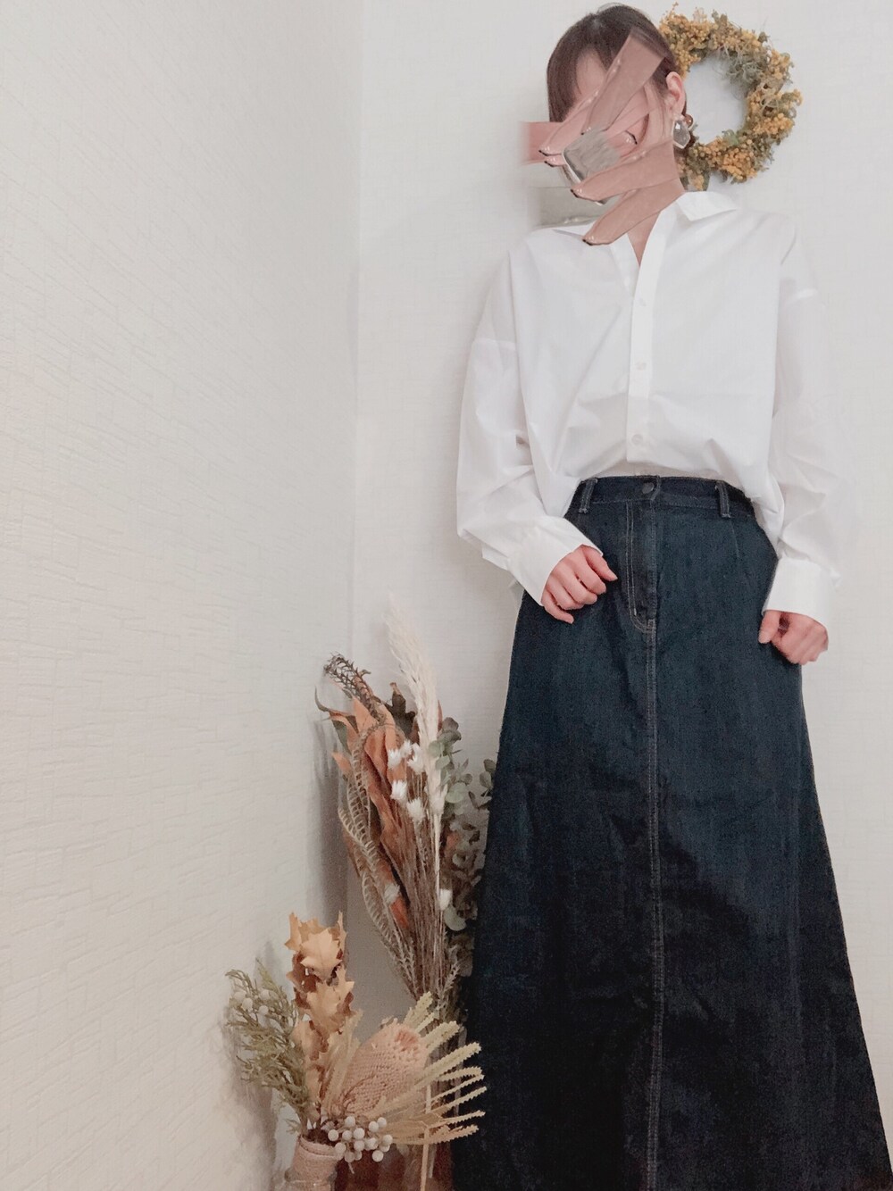 シャツ×デニム。 安定に可愛いコーデ。 今日は暖かいので、シャツ一枚で丁度いい感じです。