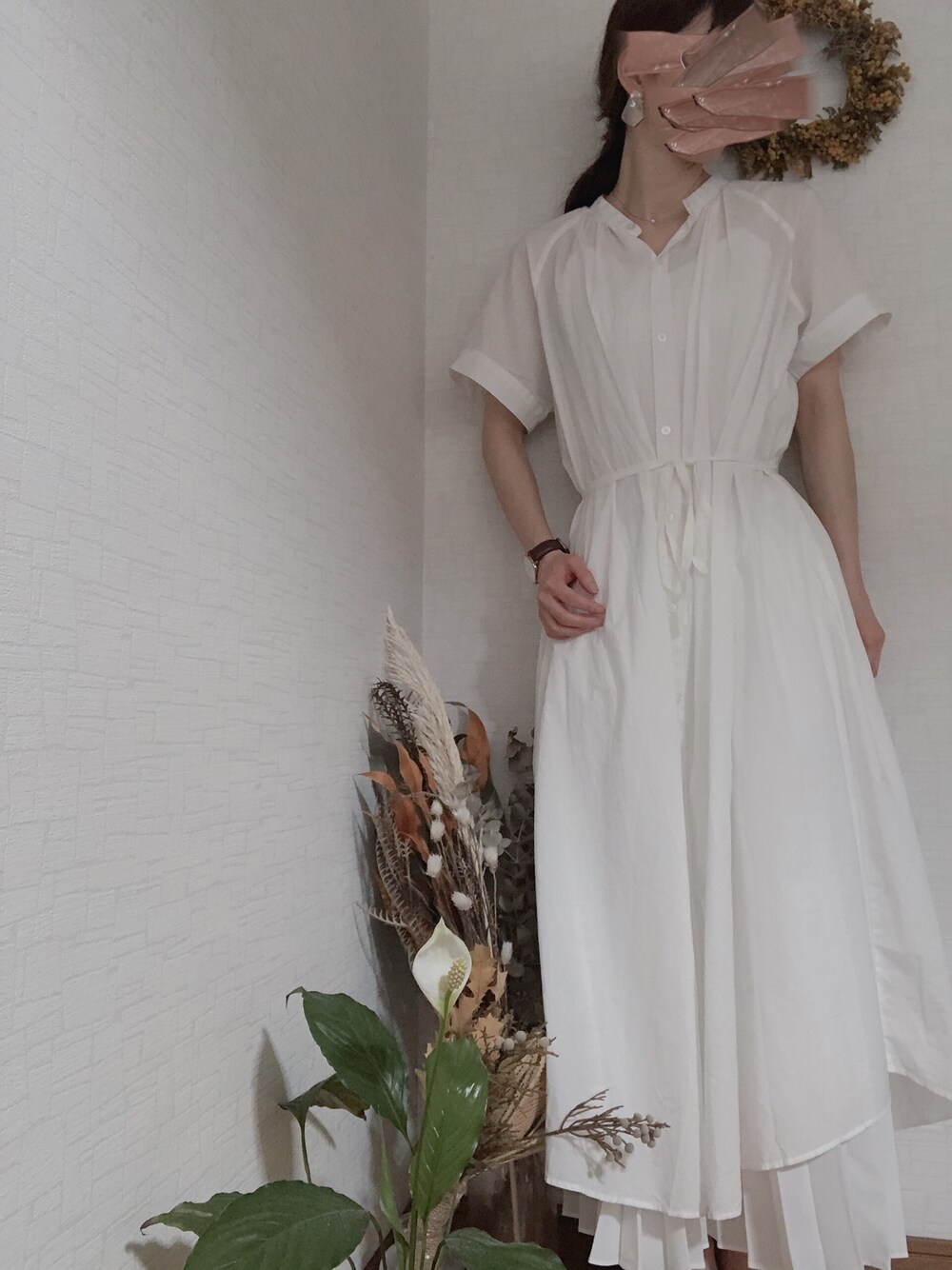 今日はホワイトコーデ。 シャツワンピースの着回しコーデです。 GUのシャツワンピースが透けるので、 中にプリーツスカートを履いて、 裾だけチラ見せな感じにしました‼︎ オールホワイトなので、 サンダルはブラックでしめました。 whiteコーデ。