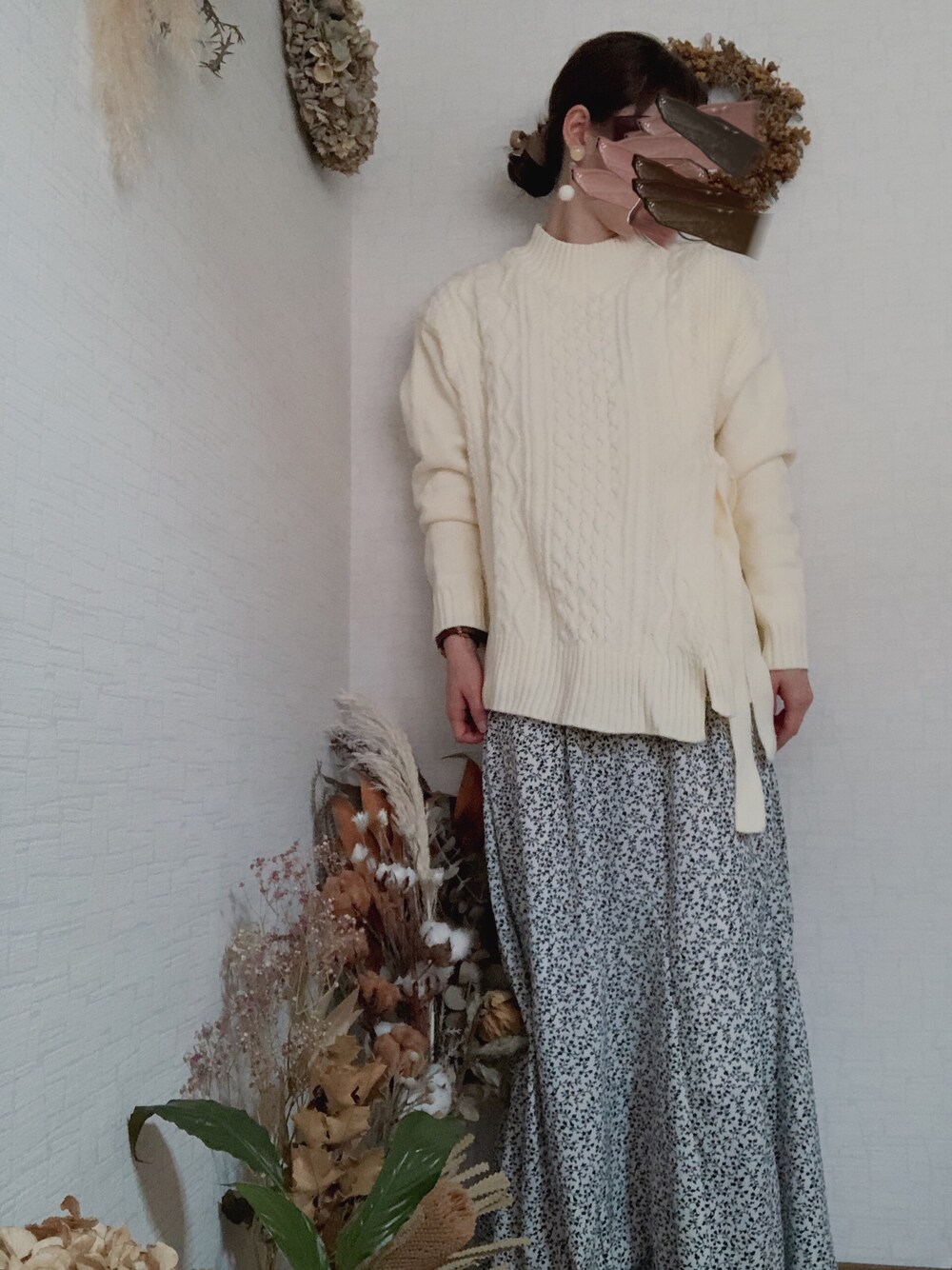 na*のニット/セーター「【インスタグラマーコラボ】サイドリボンデザインケーブルニット」を使ったコーディネート