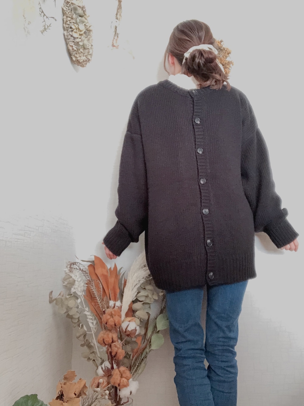 夜は友達と会う予定があったので、 ボタンを後ろにして、髪型変えて 雰囲気変えてみました! 夜は寒かったので、これにマフラー まきました。🧣 カジュアルコーデ。