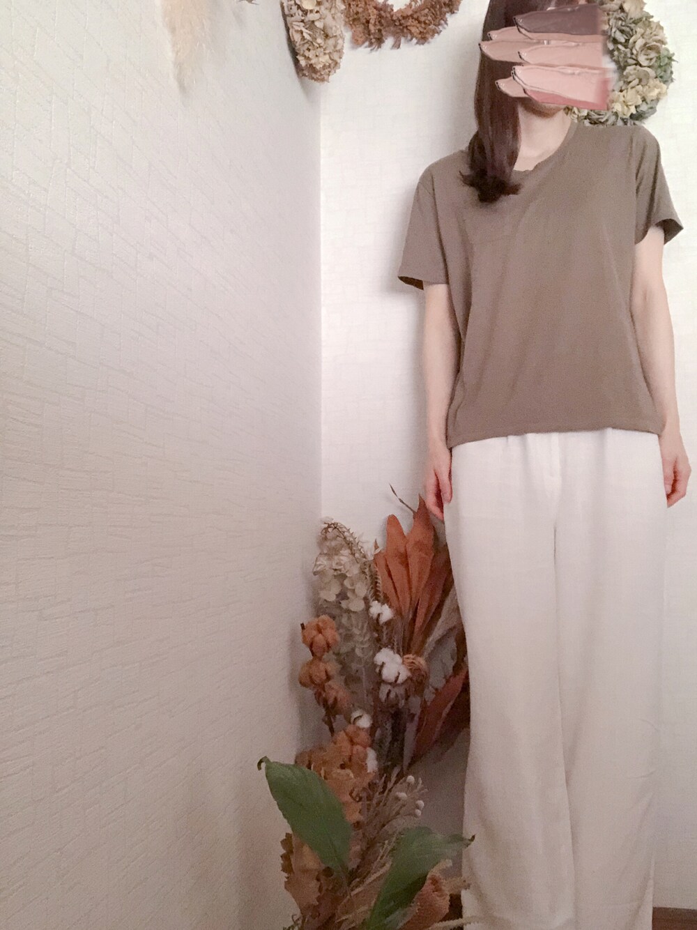 カーキとホワイトで大人っぽく。 おうちコーデ。
