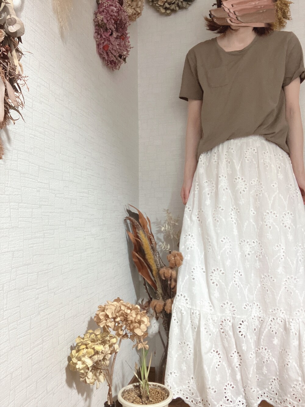 スカートとTシャツの楽ちんコーデ。