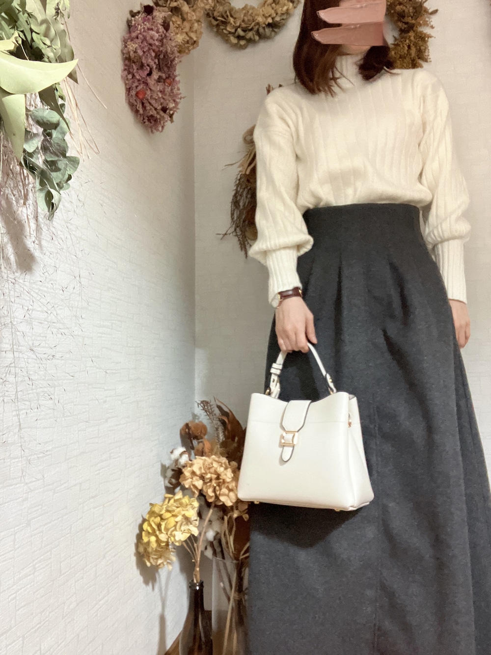 na*のハンドバッグ「【High-Line】スクエアフラップベルトカラーバッグ」を使ったコーディネート