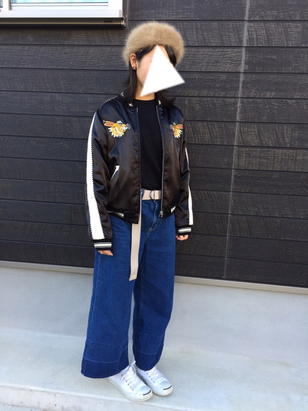 なみのスカジャン「SOUVENIR JACKET /サテンジャケット/リバーシブル/スカジャン/スーベニア/無地/刺繍/虎/トラ/ウサギ/ラビット」を使ったコーディネート