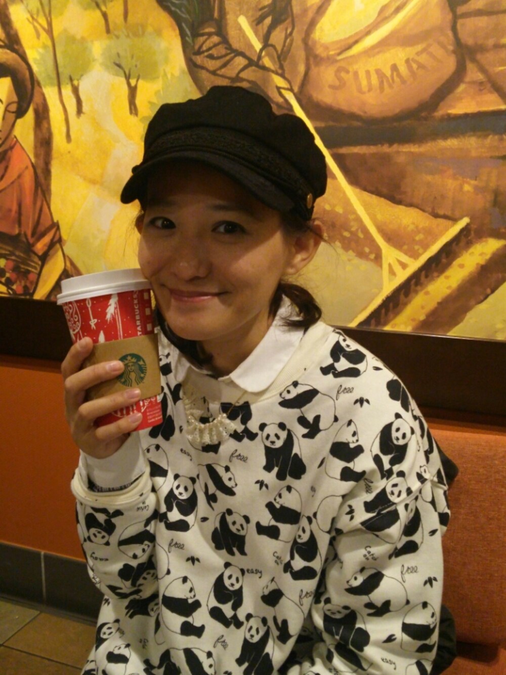 脱ぐとこんな感じ(o・ω・o) 妹が撮ってくれた🙆 いっぱい撮って一番盛れたやつ(笑) 元があれなんで、これ以上無理だと( ̄▽ ̄;)妹曰くヽ(´Д`;)ノ ネックレスは後ろでしばって好みの長さにしてます🙆とるとき心配(;´д`) 帽子はアキバで加山雄三みたいでいいでしょ☀って言われて買いました🙆 今思い返すと謎ヽ(´Д`;)ノ