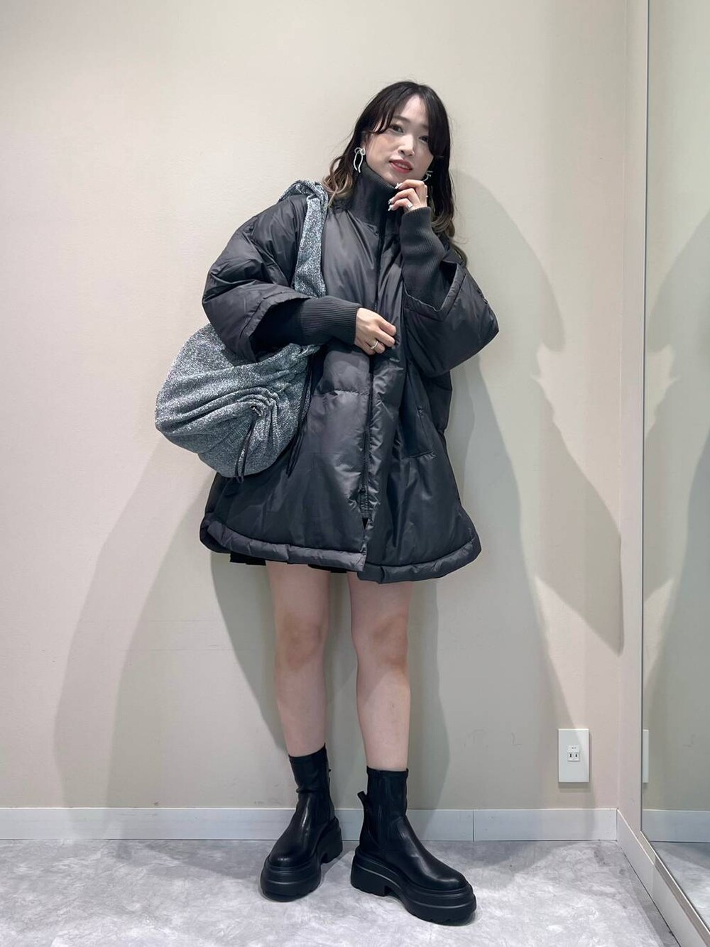 ぐっち(LOWRYS FARM イオンモール岡崎)のポンチョ「スタンドリブポンチョ 963695」を使ったコーディネート