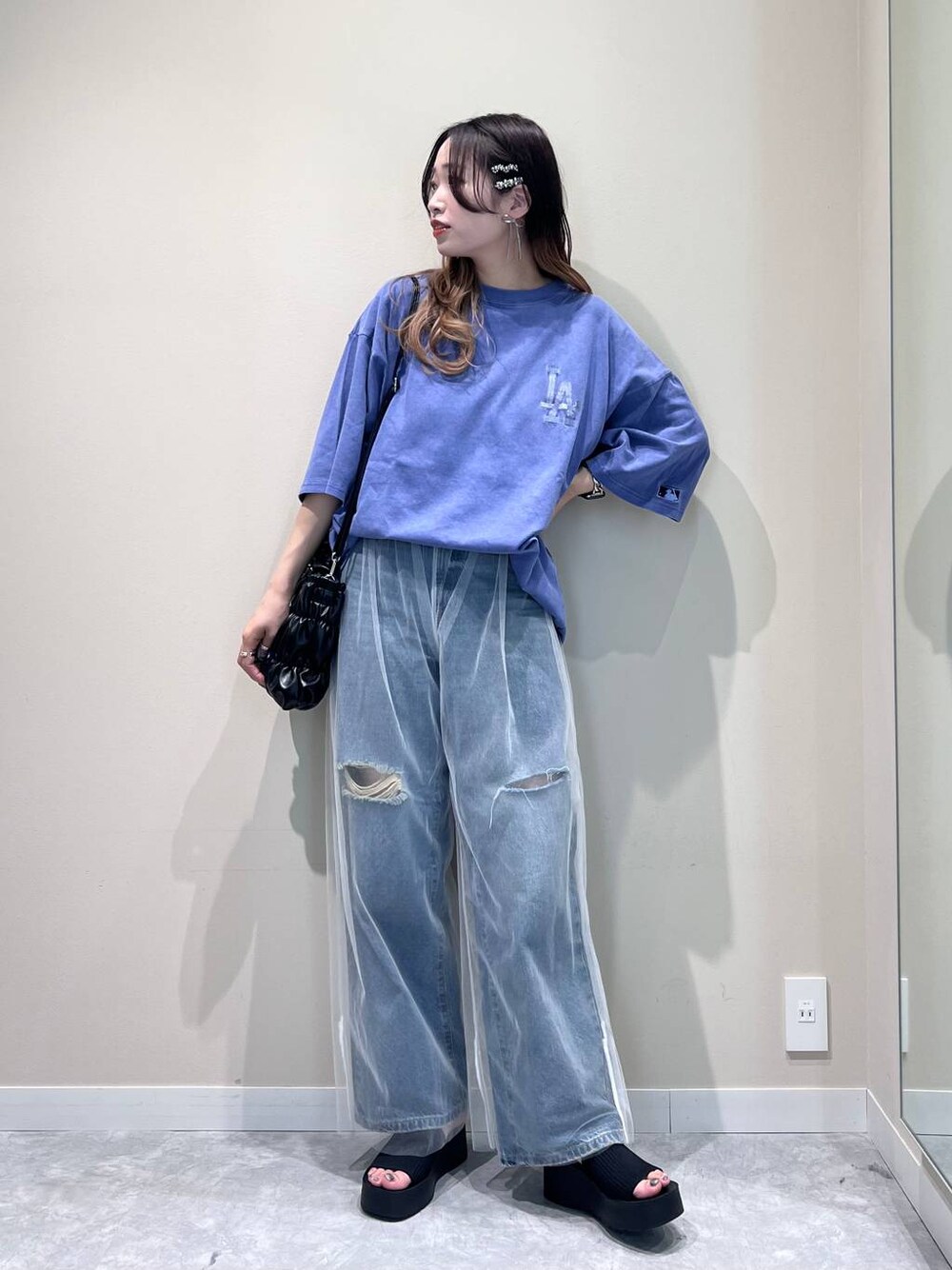 ご覧いただきありがとうございます♪ 【Tシャツ】 MLBコラボのアイテムです。 ユニセックスで着ていただけて、ゆったりとしたサイズ感です。 【デニム】 リメイクデザインのデニムです。 ワイドストレートシルエットで、縦長にすっきりと見えます。 柔らかいCONEデニムを使用しているので、履き心地のいいアイテムです。 【チュールパンツ】 レイヤードで使えるチュール素材のパンツです。 今年らしい透け感のあるデザインで、お手持ちのアイテムに合わせるだけでトレンド感のあるコーディネートになります。