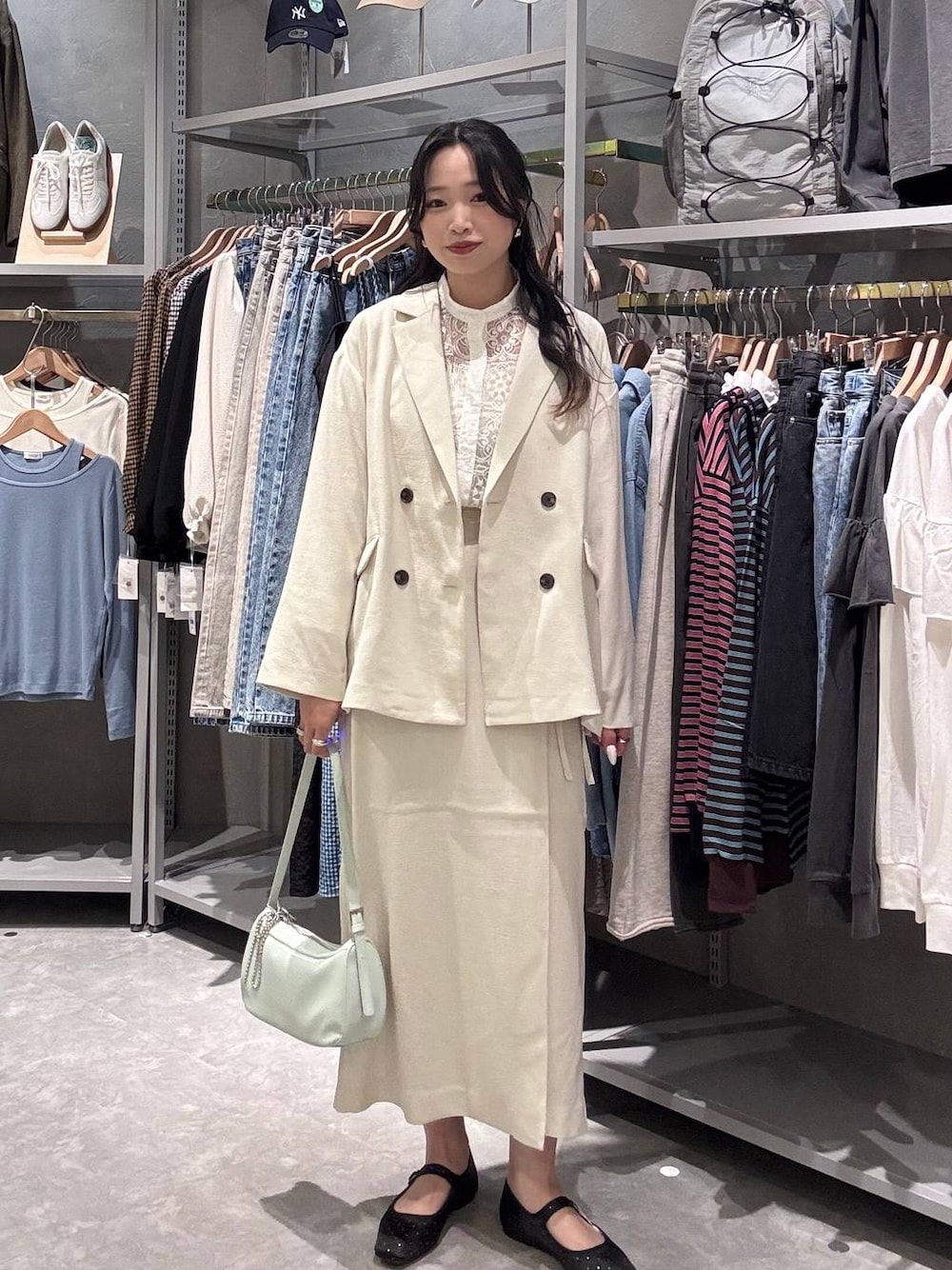 ご覧いただきありがとうございます♪ 【ジャケット】 清涼感のあるドライタッチな素材でサラッと着ていただけます。 ゆったりとオーバーサイズなので、インナーが厚手な長袖でも着やすいアイテムです。 同素材のワイドパンツとセットアップでも着ていただけます。 【スカート】 サイドにリボンがついたラップデザインのスカートです。 裾幅が広めの台形シルエットですっきりと着て頂けます。 ウエストは後ろがゴムなのでとても楽な履き心地です。