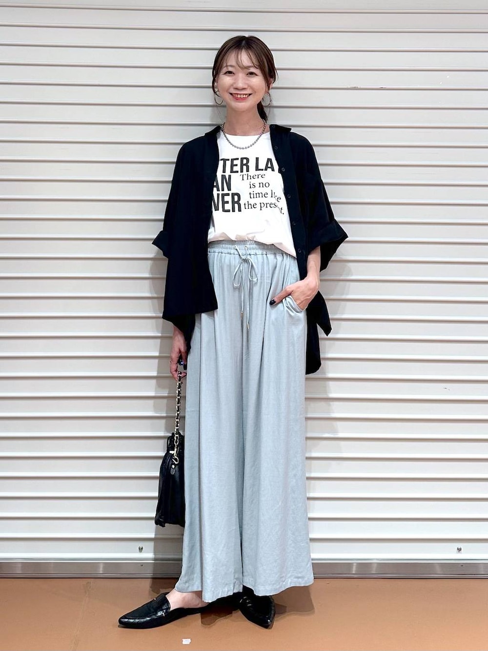 nami(Elura/ヤエチカ)(Elura 八重洲地下街)のその他パンツ「シャリサラワイドパンツ〈低身長サイズあり〉/450247」を使ったコーディネート