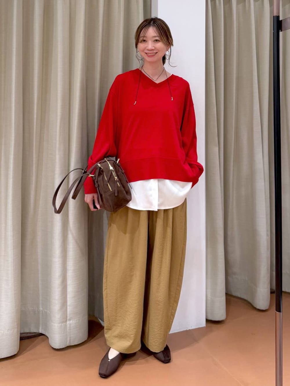 nami(Elura/ヤエチカ)(Elura 八重洲地下街)のピアス(両耳用)「ステンレスワンタッチビッグフープピアス / 144604」を使ったコーディネート